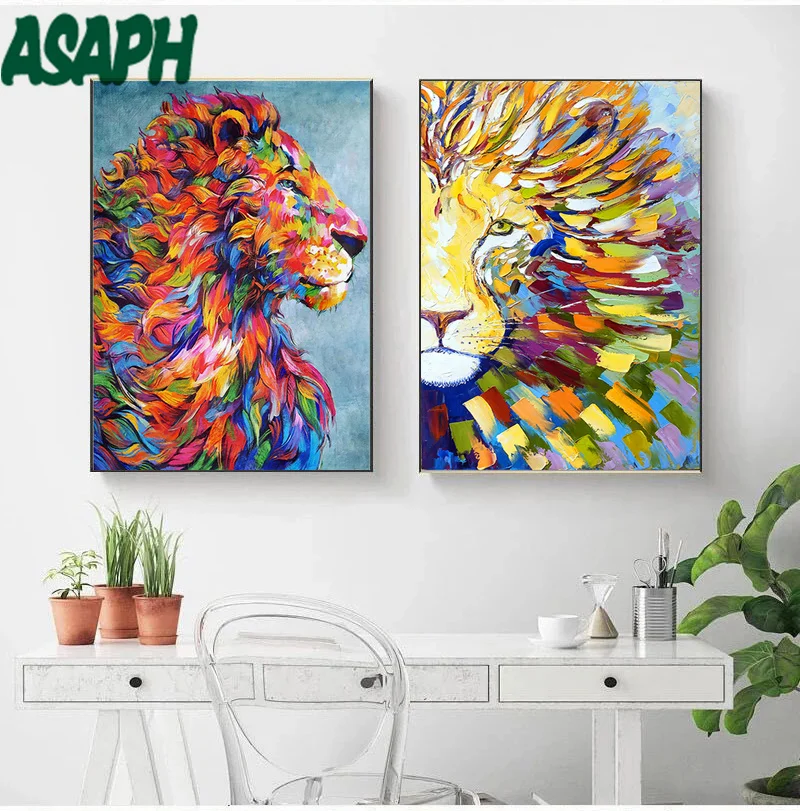 Красочная картина маслом Лев грива постер животное стены художественный постер картина Картина Mo. ..