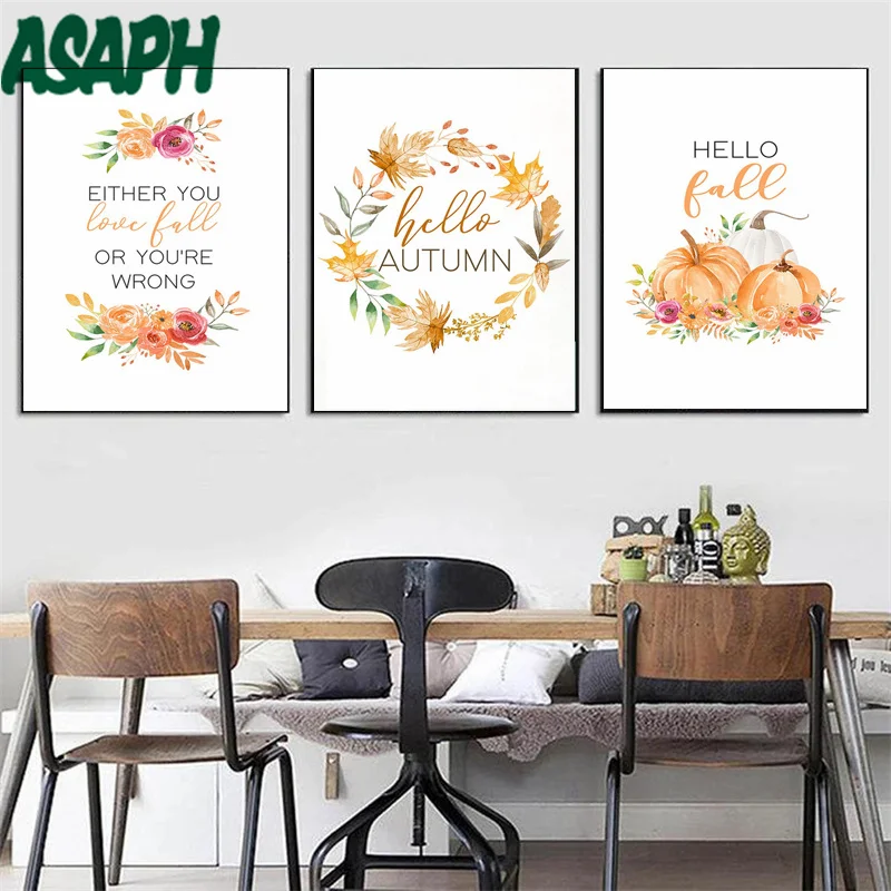 Оранжевая осень Hello Home Тыква цветок листья Настенная картина плакаты холст п...
