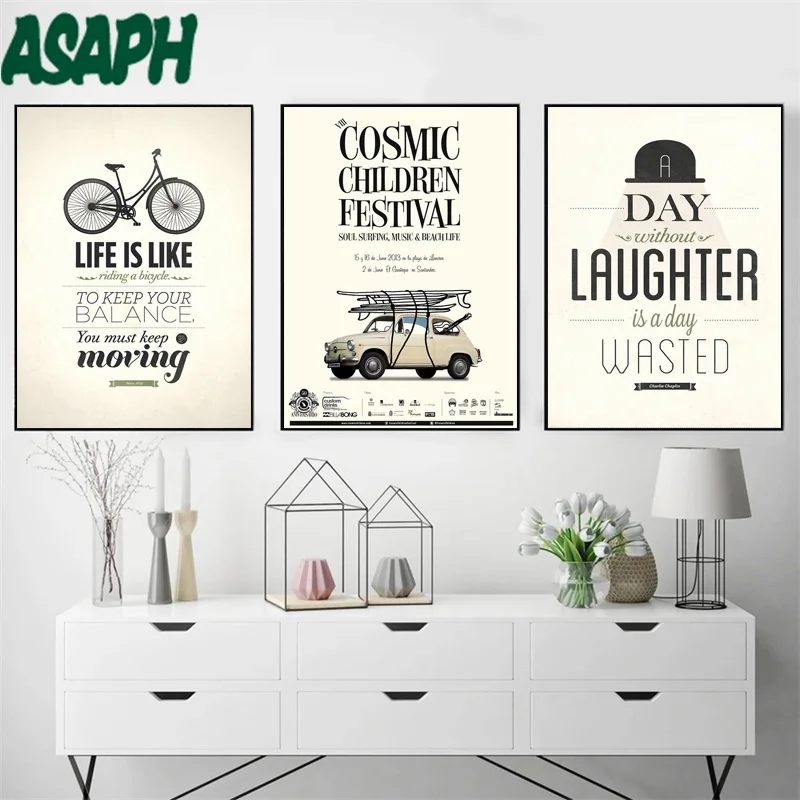 Letter Life-это как езда на велосипеде в винтажном стиле, сохраняющая баланс, искусство скандинавских стен, Pictur...