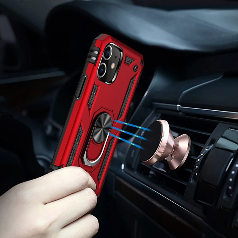 Автомобильный Магнитный чехол для iPhone, чехол для телефона с кольцом-держателем для iPhone 6 7 8 SE 8Plus 11 Pro X XR XS MAX 12mini 13 в стиле милитари