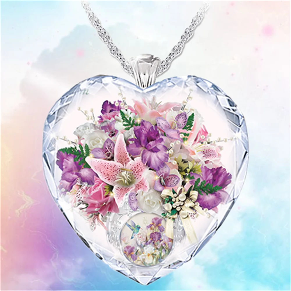 Элегантное ожерелье с кулоном в форме сердца, хрустальные цветы, модное женское ожерелье, изысканные женские повседневные аксессуары, свадебные украшения, подарки на день святого валентина