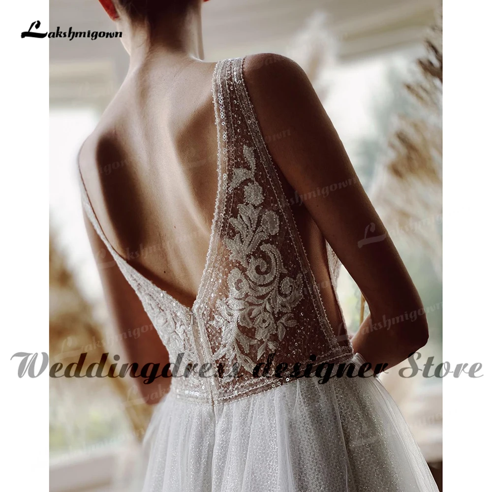 Роскошное пляжное свадебное платье А-силуэта 2022, V-образный вырез, бисерное кружево, блестящее Тюлевое платье для женщин 2022, винтажное платье для невесты