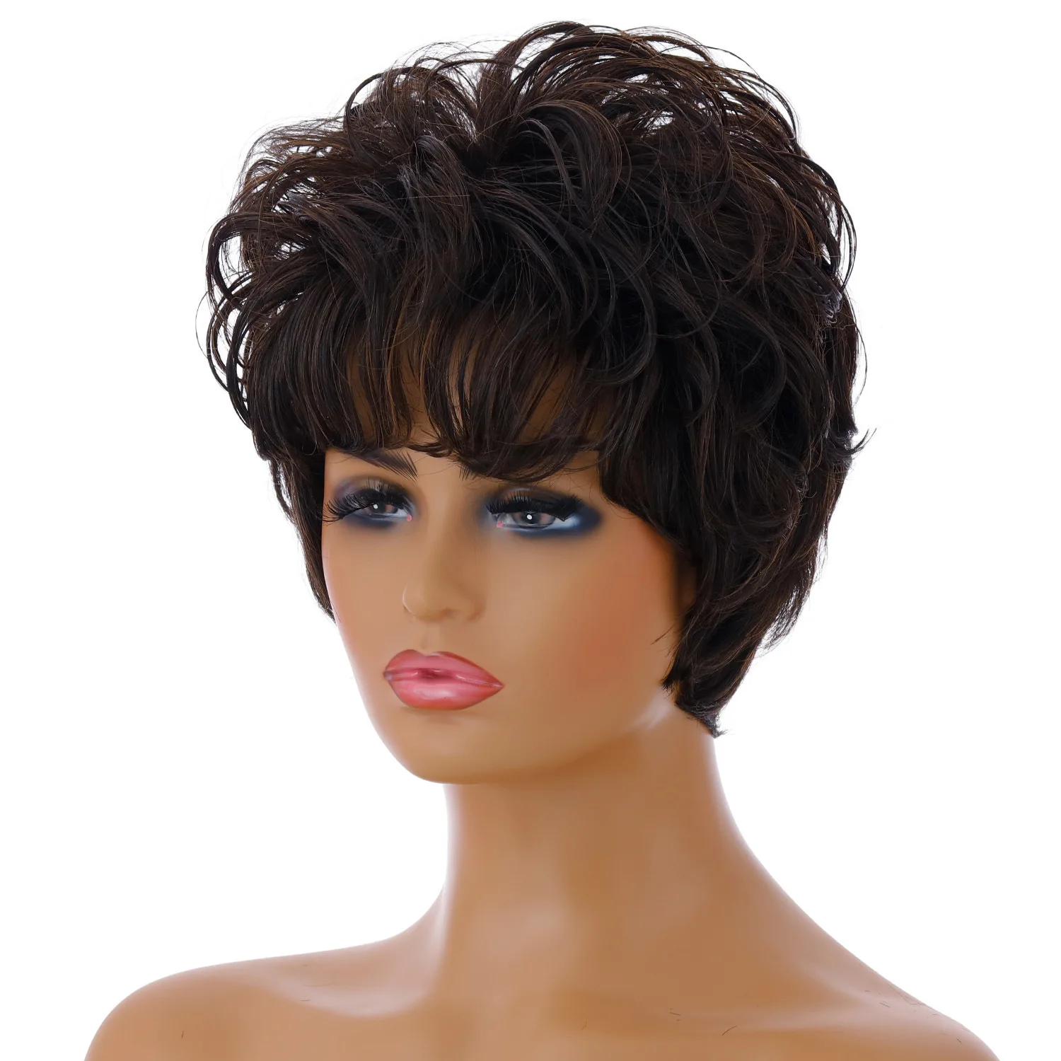 Короткие вьющиеся парики JOY BEAUTY для чернокожих женщин, синтетические черные смешанные коричневые пушистые волосы, модные термостойкие для вечеринок, повседневного использования
