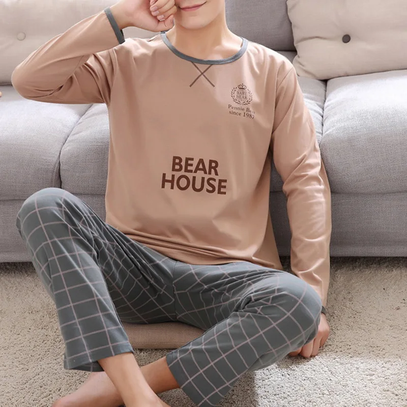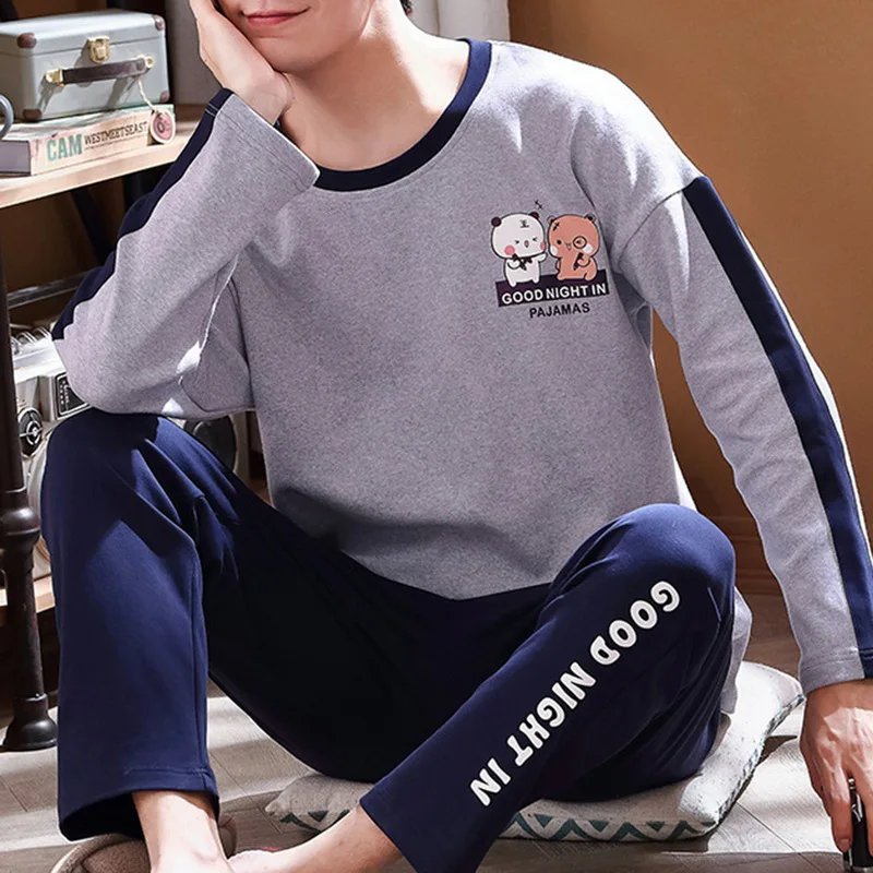 Хлопковый пижамный комплект с длинным рукавом для мужчин, 2021, мил...