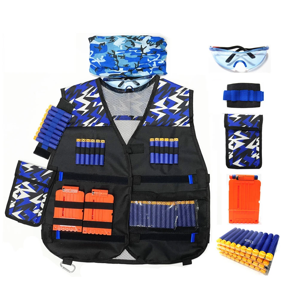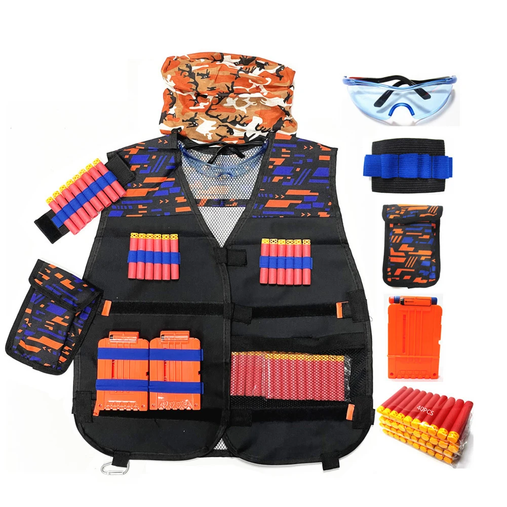 Детский жилет, куртка, жилет, костюм, держатель, комплект для N-Strike Elite, с зажимом, Дротика, пули, очки, нагрудник, ремешок на запястье, для игр на открытом воздухе, игрушки