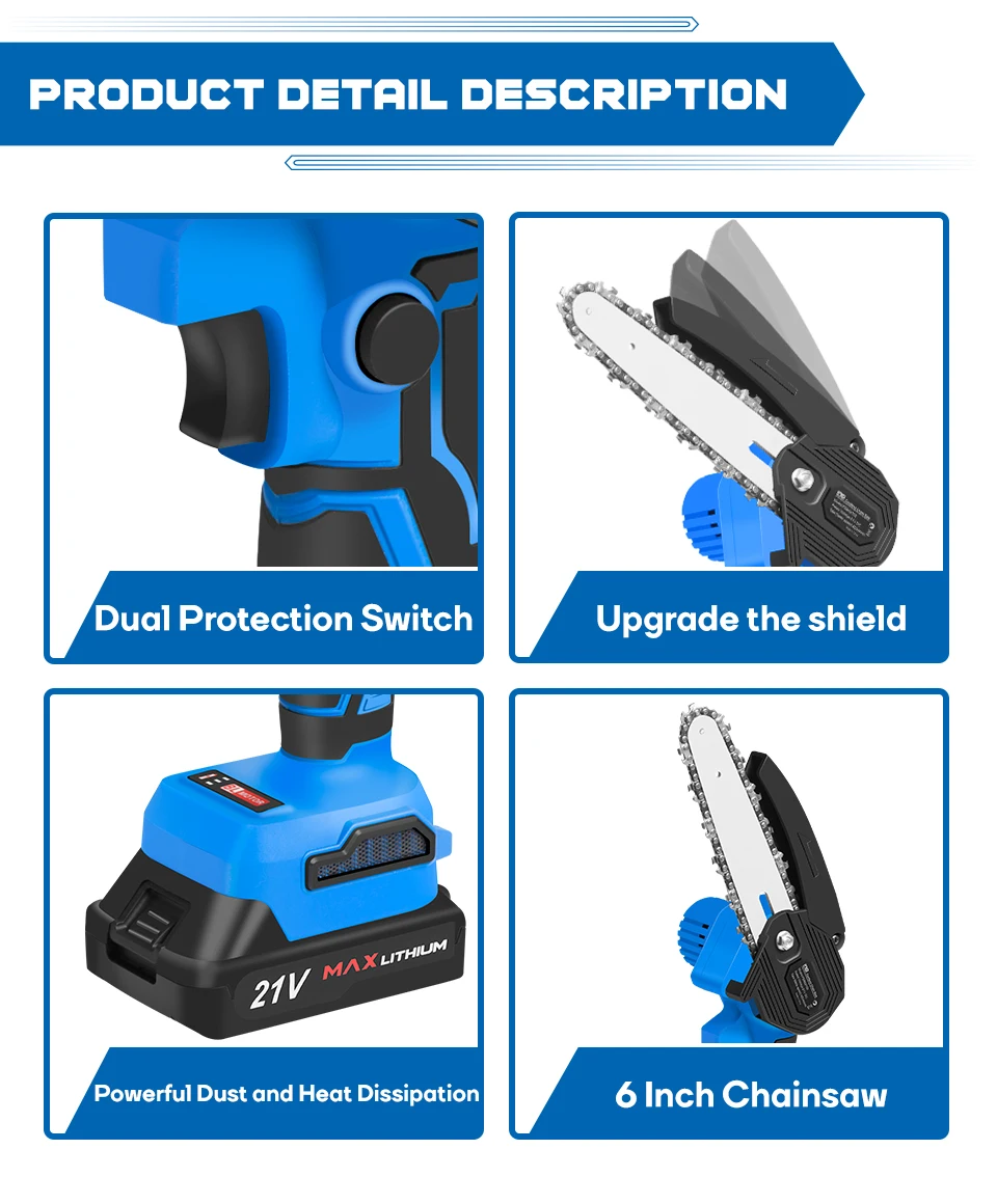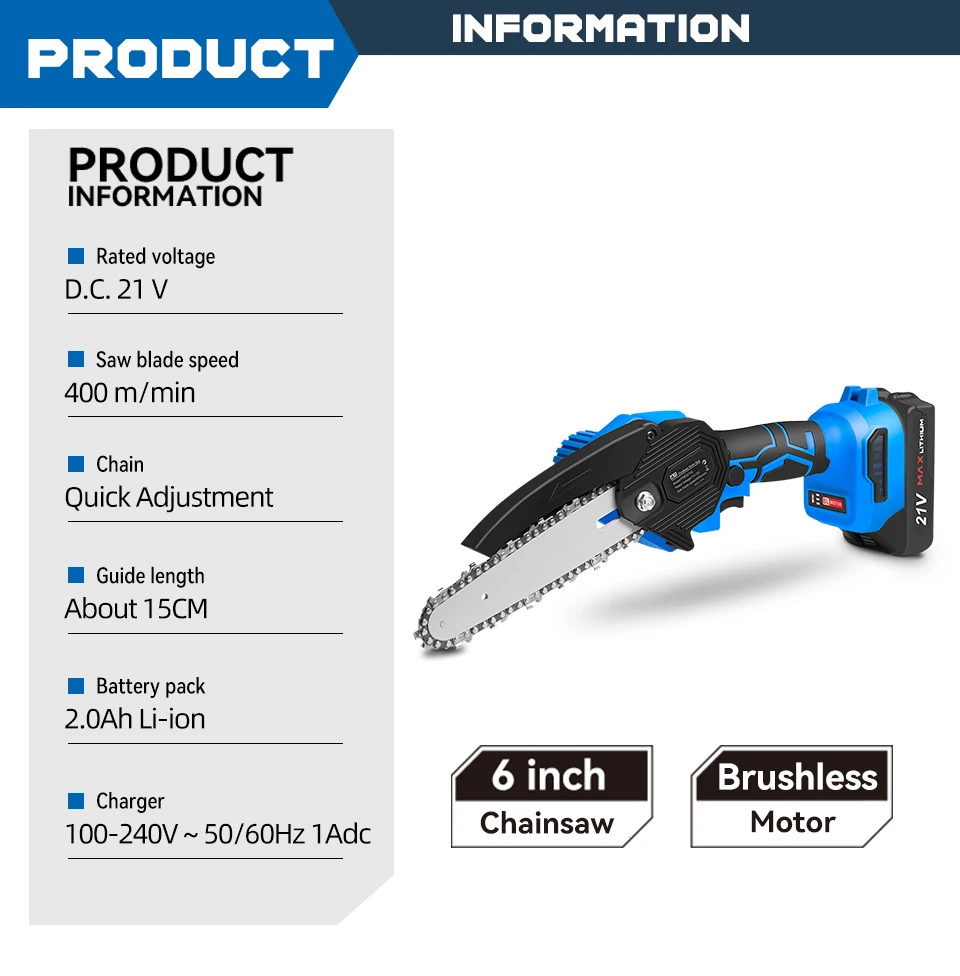 Цепная пила PROSTORMER, портативная мини-пила для обрезки древесины, 6 дюймов, бесщеточная, 21 в