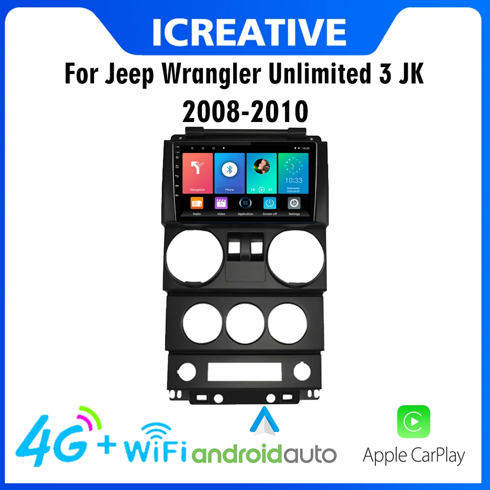 CarPlay Автомагнитола Магнитола Автомобильный мультимедийный стереопроигрыватель, 9 дюймов, Android, 2 Din, Авторадио для Jeep Wrangler Unlimited 3 JK 2008-2010, GPS-навигация, Wi-Fi радио 2 дин андройд