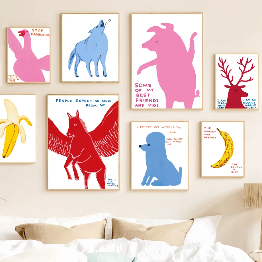 Картина на холсте с изображением волка, свиньи, гуся, банана