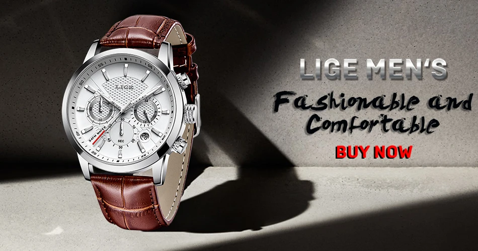 Часы наручные LIGE мужские с кожаным ремешком, роскошные брендовые ...