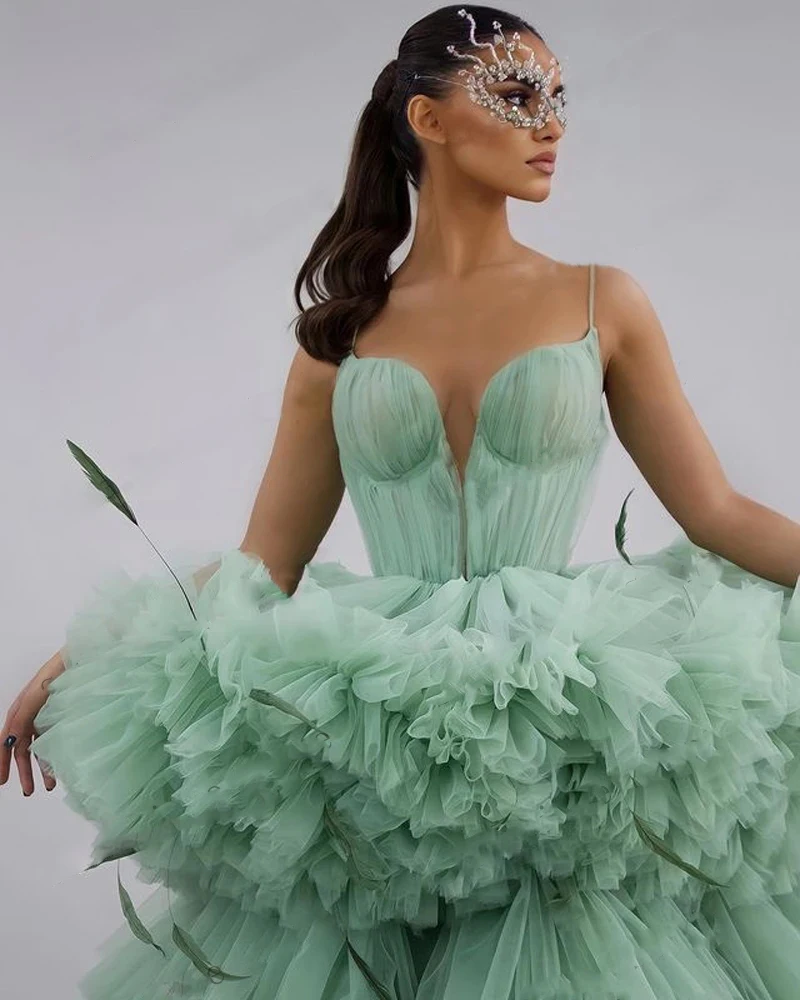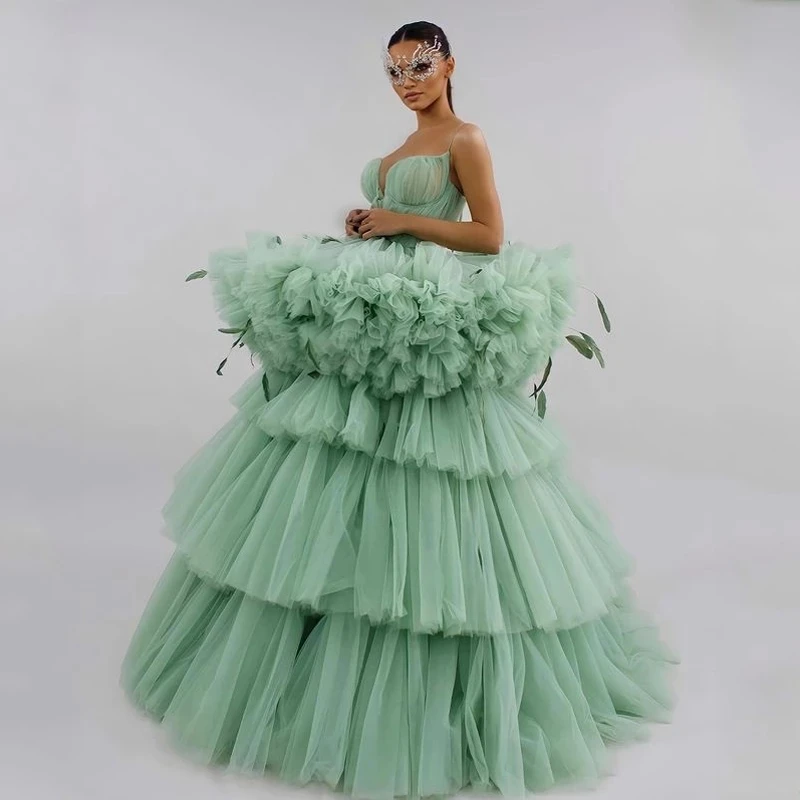 Зеленое мятно-зеленое Пышное Платье для вечеринки с многоярусными оборками бальное платье для конкурса платье для фотосъемки вечернее платье