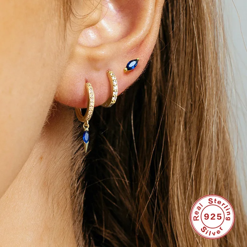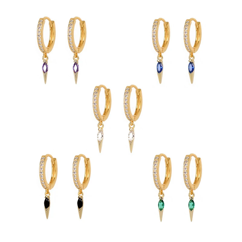 Женские серьги-кольца из серебра 925 пробы с разноцветными цирконами