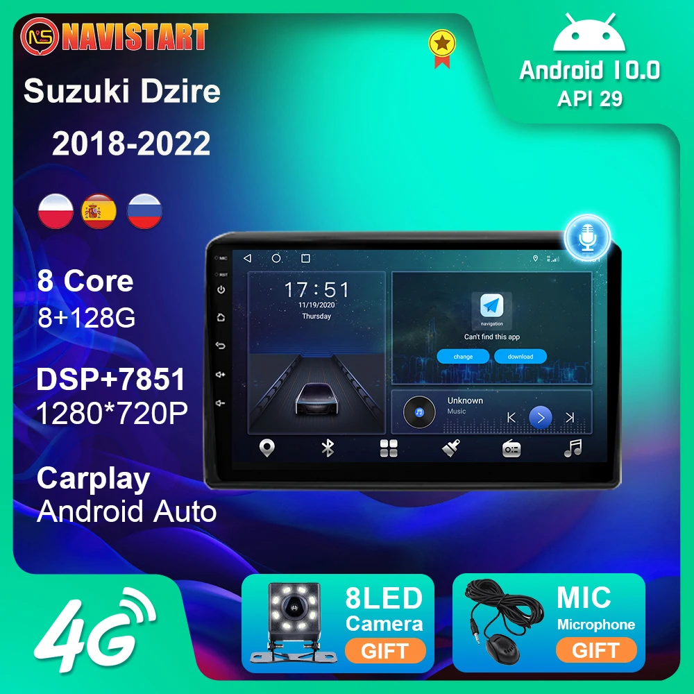 Автомагнитола 2DIN на Android 10 для Suzuki Dzire 2018-2022, мультимедийный проигрыватель с GPS-навигацией, 4G, Wi-Fi, DSP, BT, Carplay, стерео, Android