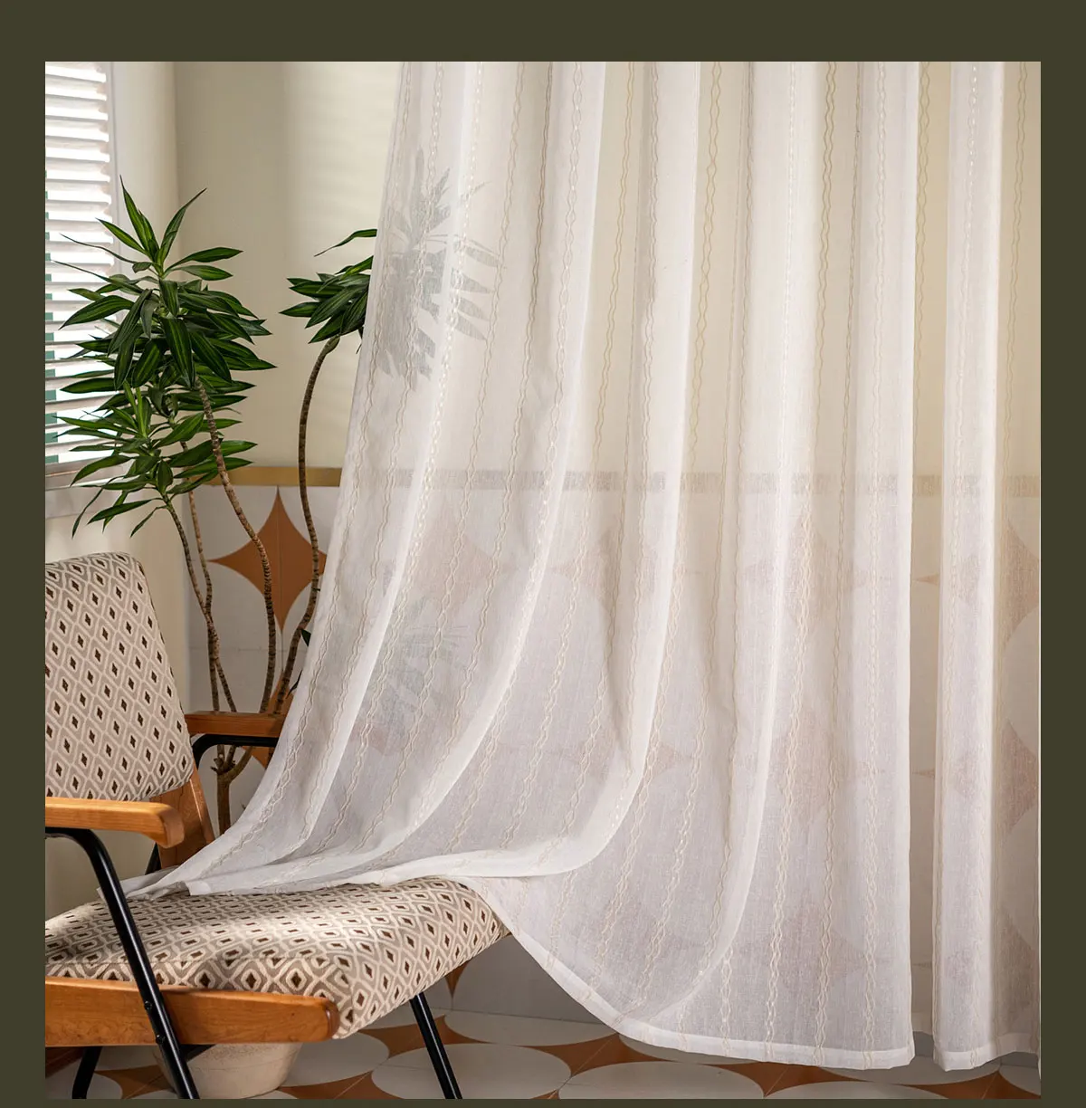 Полосатые белые тюлевые занавески с вышивкой для гостиной, современные прозрачные Занавески для спальни, Затемняющая вуаль для окна, размер на заказ