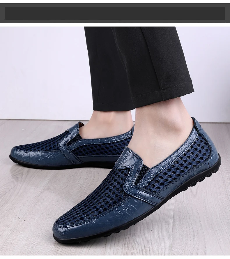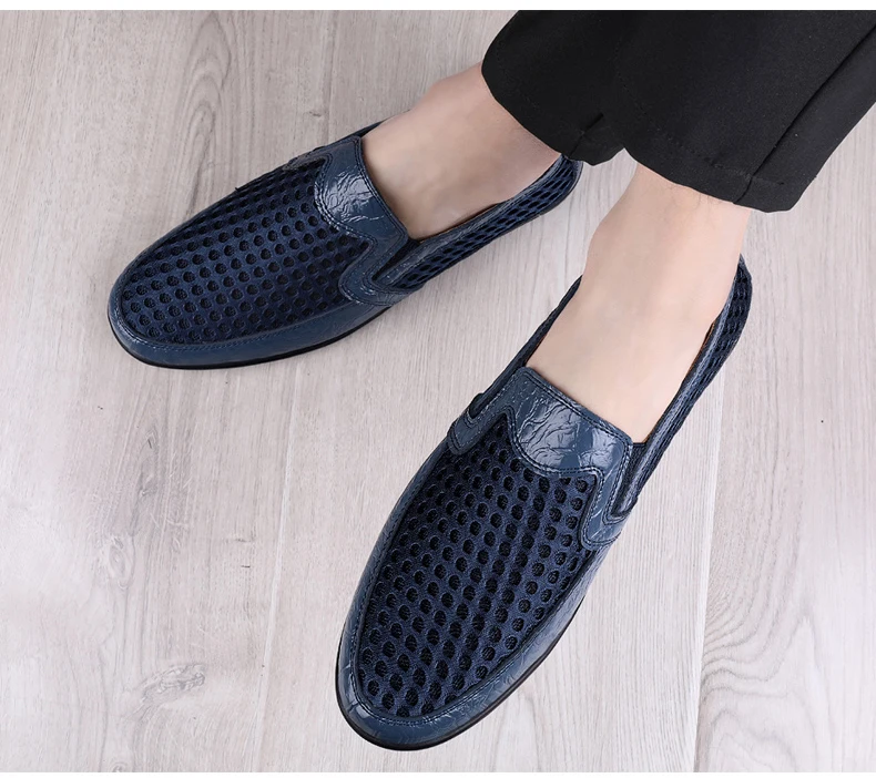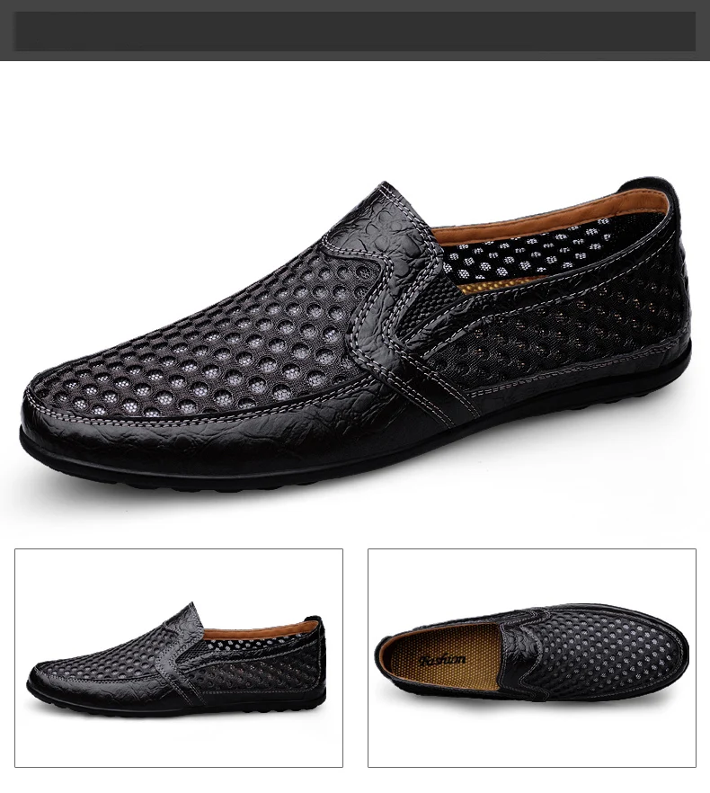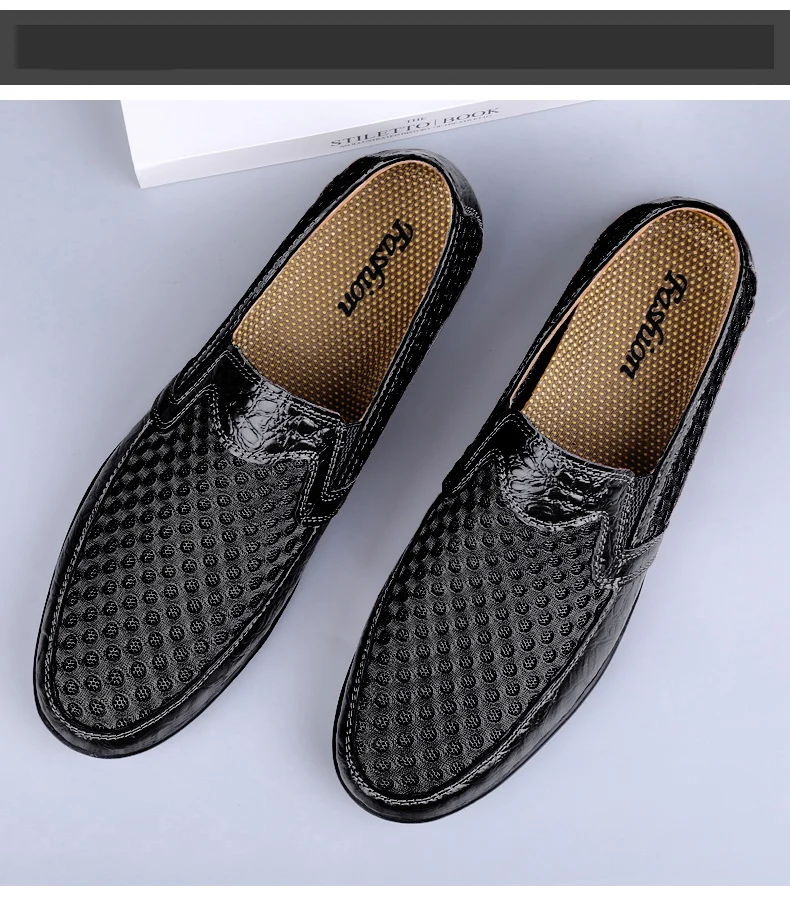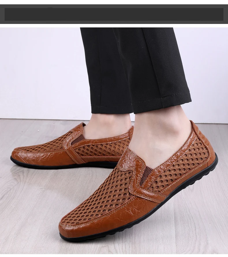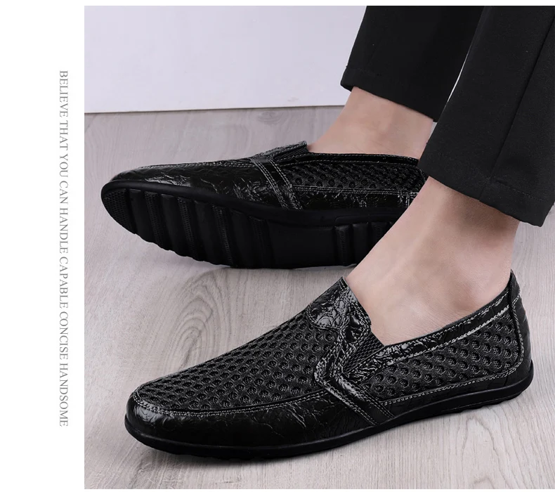 Мужские кожаные туфли без шнуровки, перфорированные лоферы, дышащие...