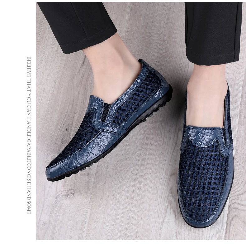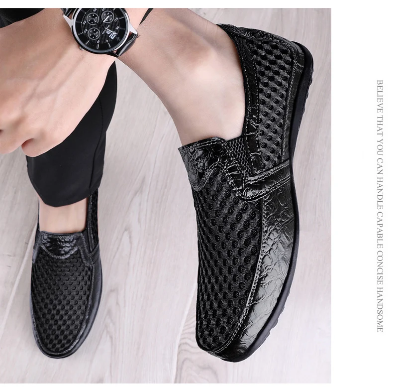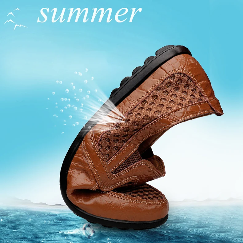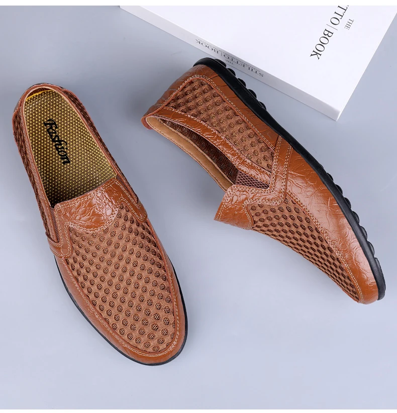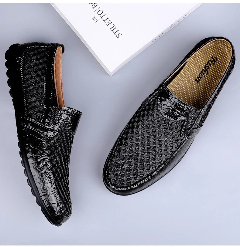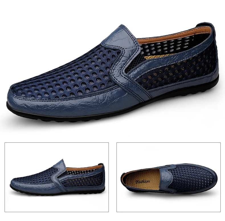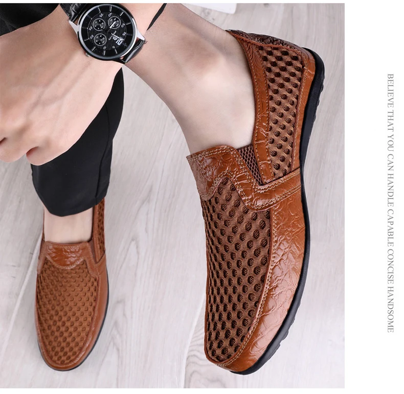 Мужские кожаные туфли без шнуровки, перфорированные лоферы, дышащие...