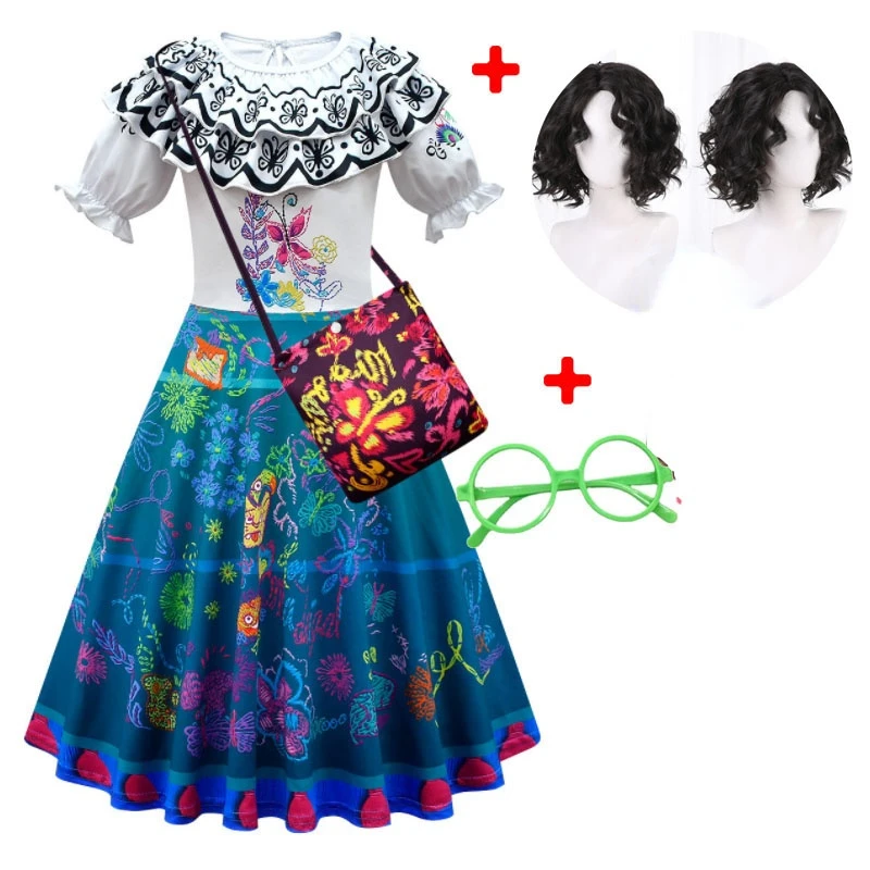 Mirabel Madrigal карнавальный костюм на Хэллоуин для девочек, карнавальный костюм, платье принцессы, плащ, сумка, очки, парик, полный комплект