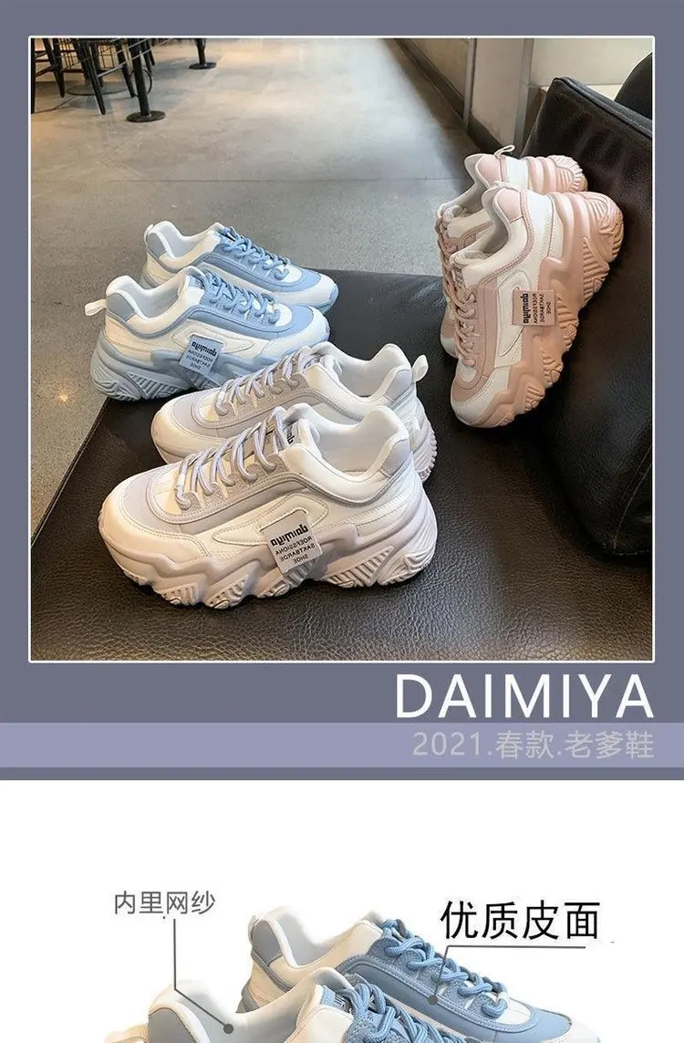 Кроссовки женские на платформе, Вулканизированная подошва, на шнуровке, удобная повседневная обувь, синие розовые, на осень
