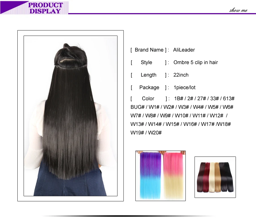 Накладные синтетические волосы Alileader, 22 дюйма, 5 зажимов, одно...