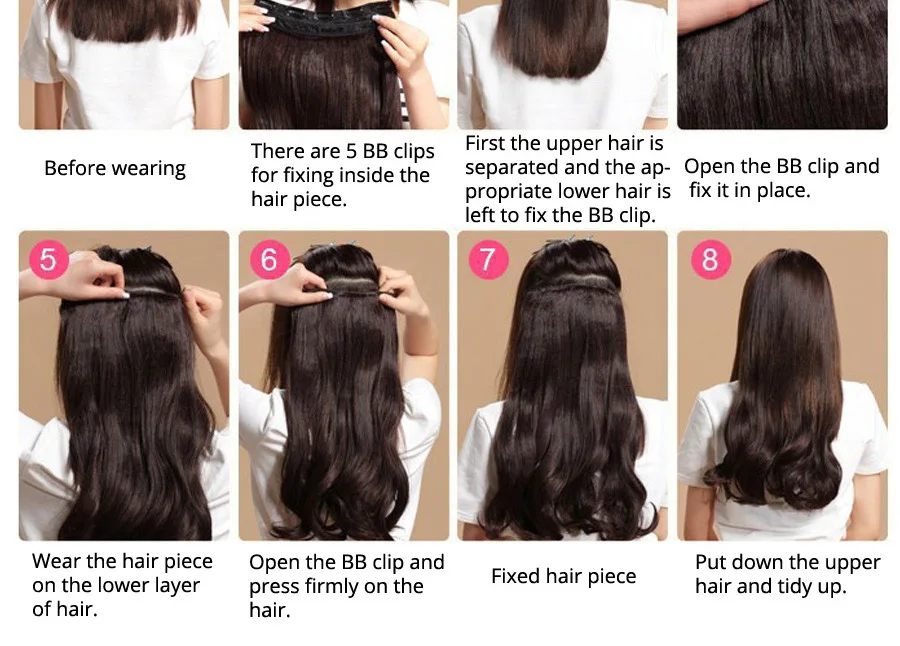 Alileader синтетические 5 зажимов для наращивания волос, натуральны...