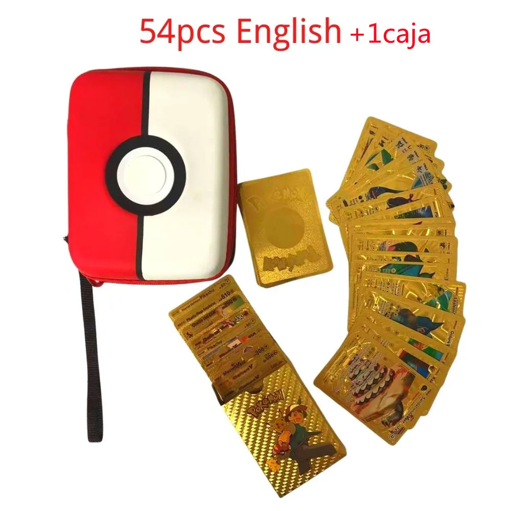 54 шт., металлическая Золотая карточная коробка с покемоном, Золота...