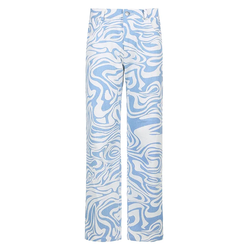 Джинсы женские в полоску, винтажная уличная одежда из денима с прин...