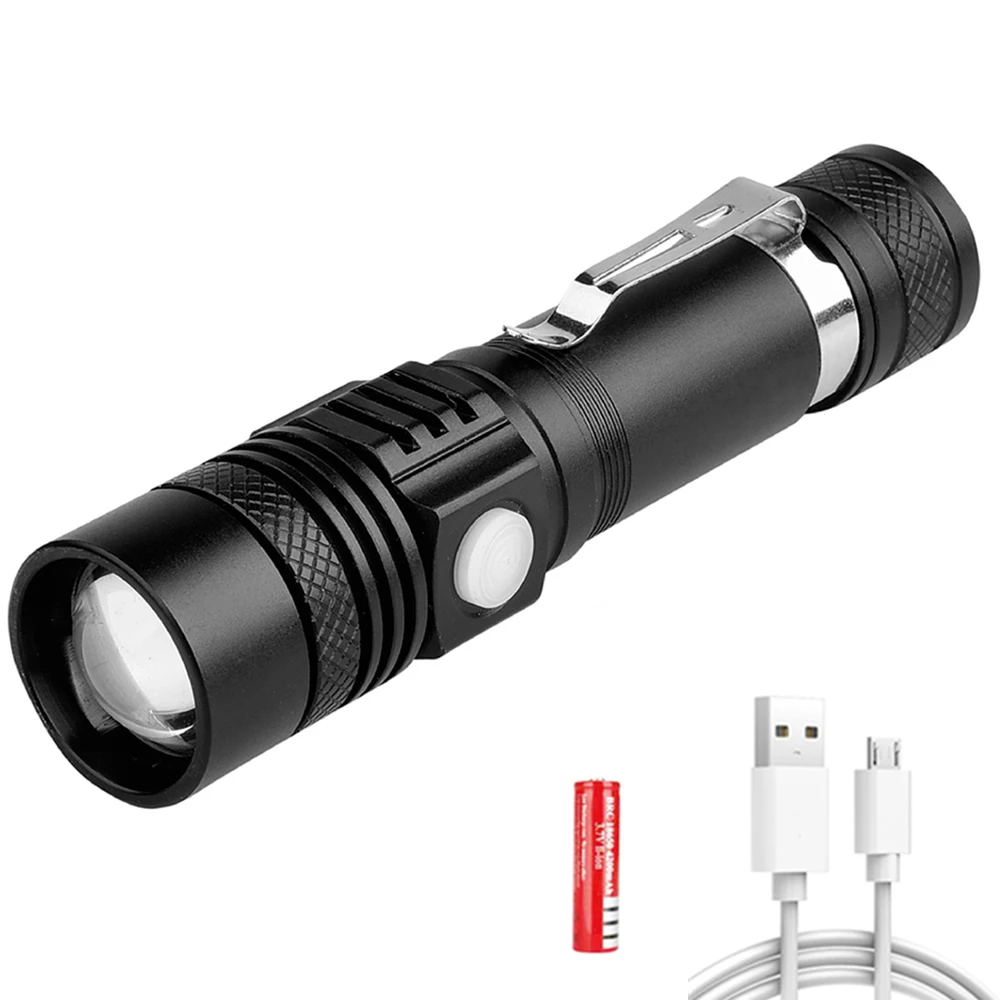 Ультраяркий светодиодный фонарик T6, лм, USB Перезаряжаемый водонепроницаемый фонарик, портативный мини-фонарик с 3 режимами масштабирования, тактический фонарик