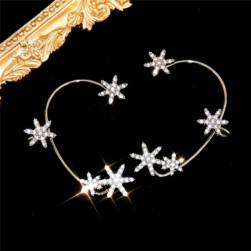 Рождественские снежинки, клипсы для ушей, манжеты для ушей для женщ...