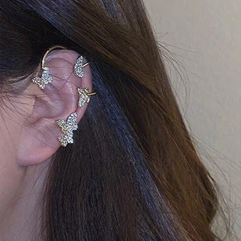 Блестящие циркониевые манжеты для ушей в виде бабочки, зажим для уш...