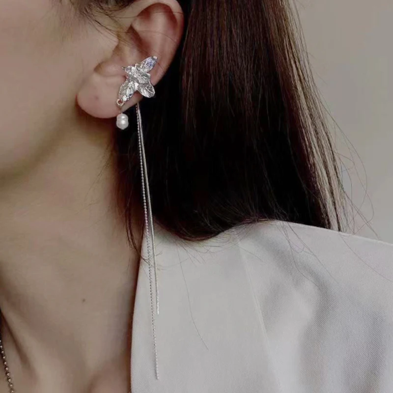 Серьги-каффы серебристого цвета с бабочкой из циркона, клипса для у...
