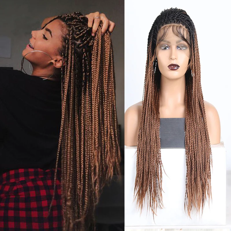 Парик для косплея Омбре коричневый 13*4, синтетические плетеные волосы из высокотемпературного волокна, с косичкой спереди, для черных женщин, без клея