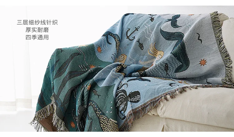 Шарф-Русалка для дивана, вязаное покрывало для дивана, одинарный и двойной чехол для дивана, покрывало с полным покрытием, одеяло с вышивкой, домашний декор