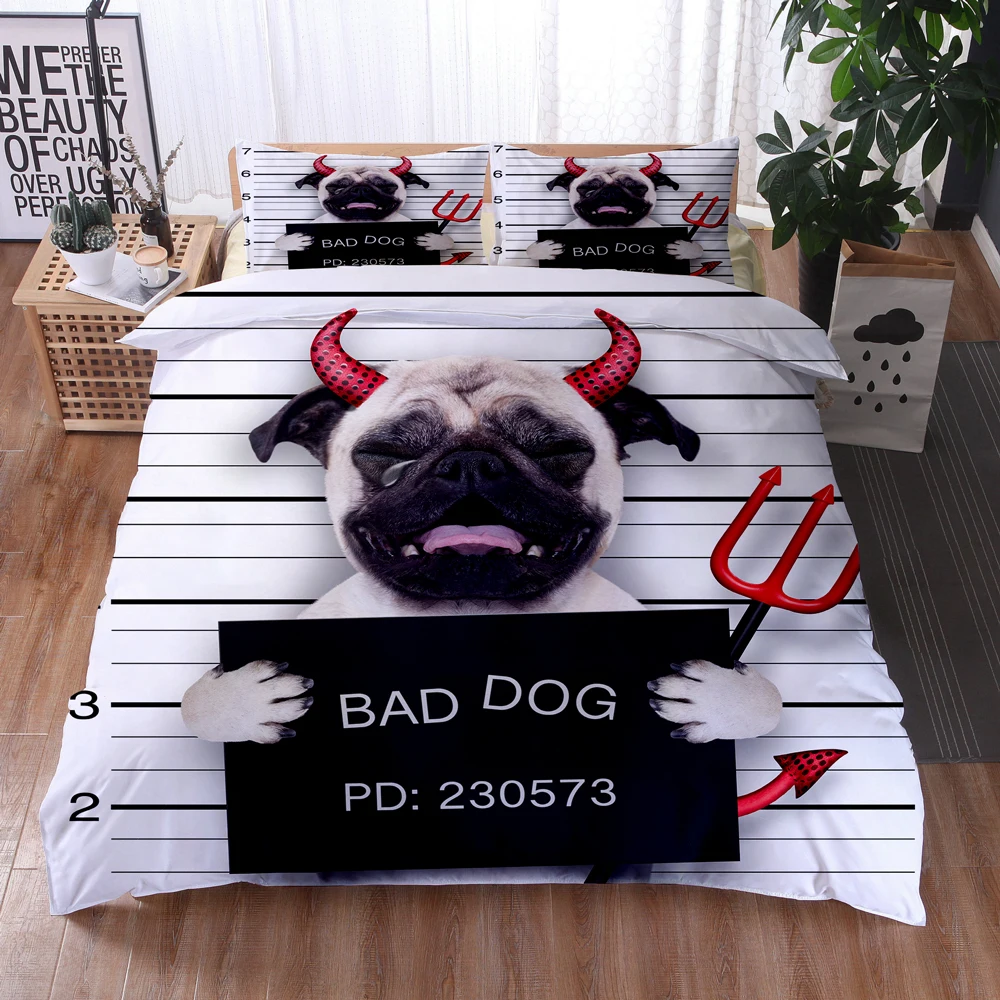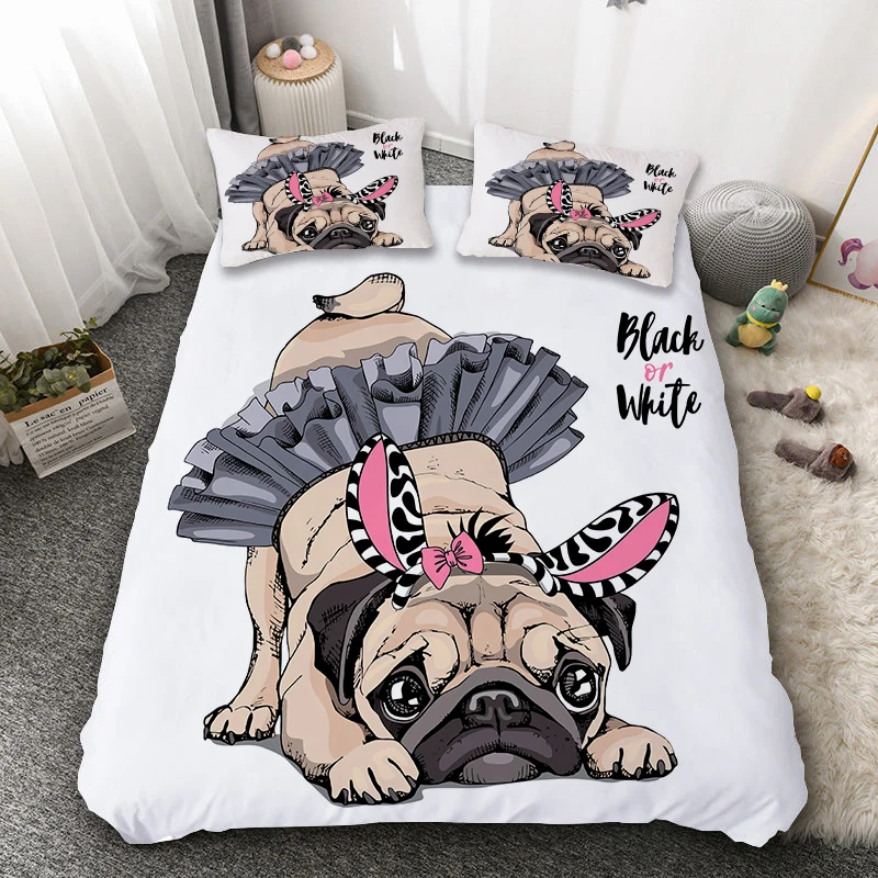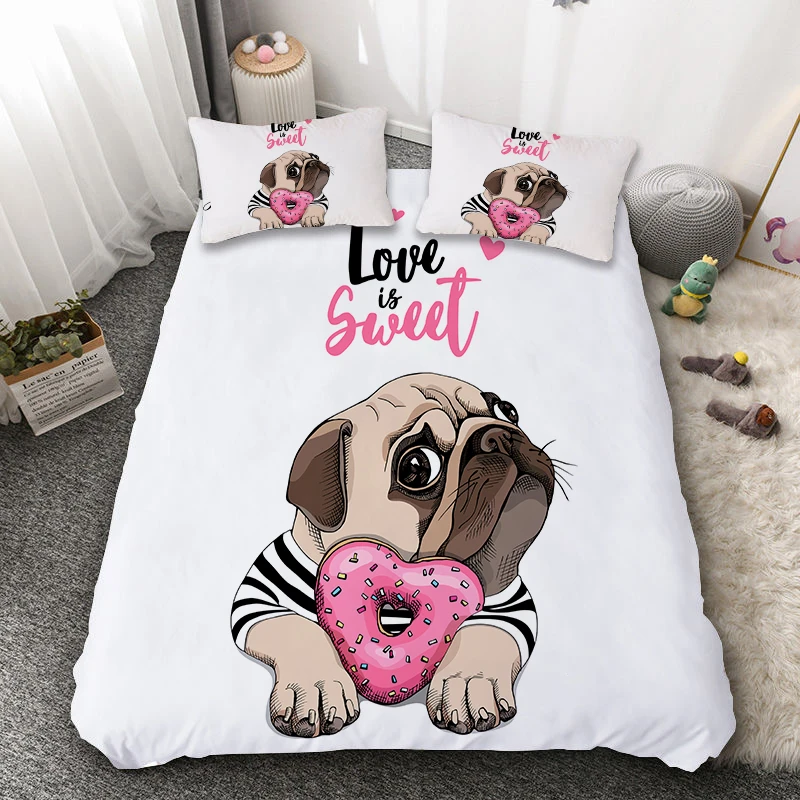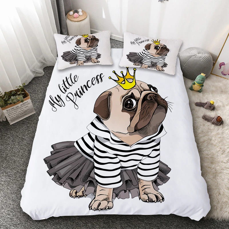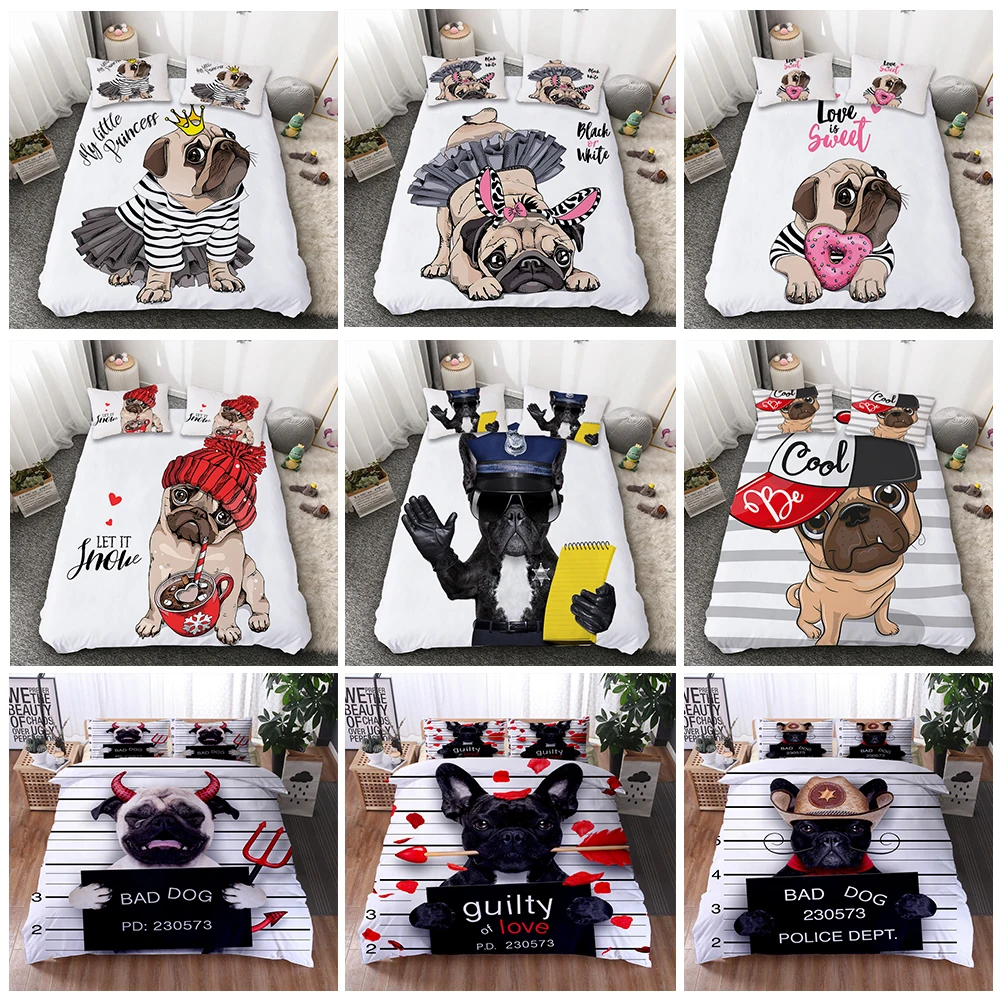 Комплект постельного белья из 23 предметов, домашний текстиль, пододеяльник, наволочка, с изображением милого мопса, мультяшных животных