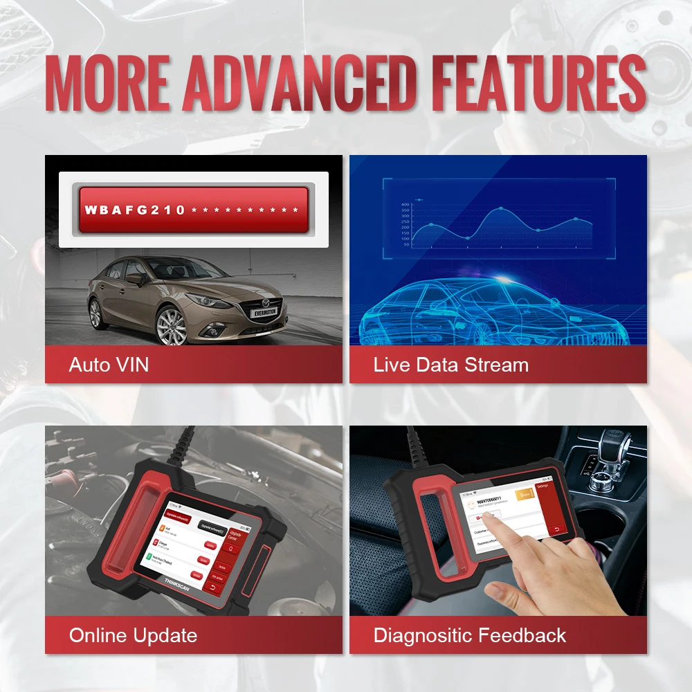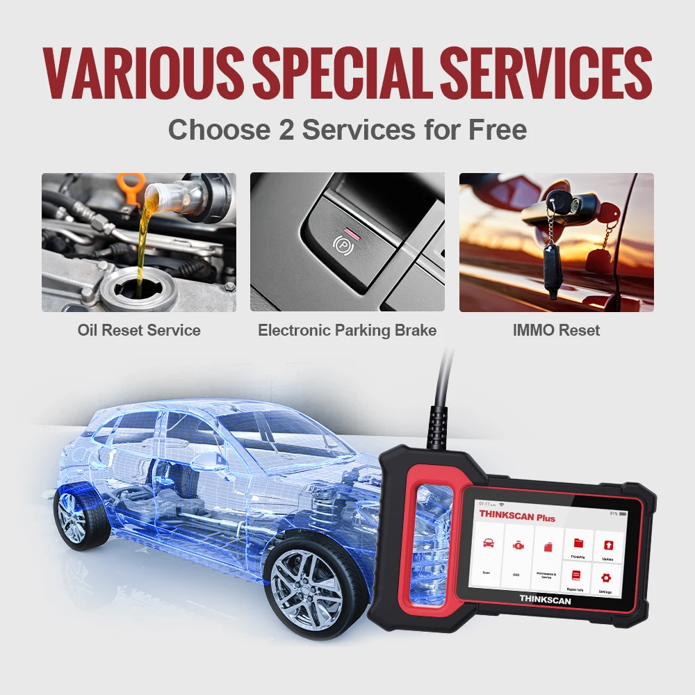 THINKSCAN Plus S4 в настоящее время поддерживает программное обеспечение для обслуживания 28, программное обеспечение для обслуживания полностью бесплатное использование и бесплатное обновление.Вы можете выбрать 3 Услуги сброса в качестве срока службы бесплатно от 28 обслуживания1. Обслуживание сброса масляной лампыПозволяет выполнить сброс для нового расчета системы жизнедеятельности моторного масла после изменения масла.2. Сброс электронного стояночного тормоза EPBЭто важно для поддержания безопасности и эффективности электронной тормозной системы.3. Батарея летучей мышиПозволяет сканировать устройство, чтобы оценить состояние заряда батареи, контролировать ток замыкания, зарегистрировать замену батареи и активировать остальное состояние транспортного средства.4. Сброс дизельных Сажевых фильтров DPFСпециально работает для дизельных Сажевых фильтрующих систем с регенерацией DPF, замена компонентов DPF после замены блока управления двигателем.5. Сброс датчика рулевого управления SASПомогает очистить воспоминания датчика угла поворота руля и играет важную роль в калибровке датчика угла руля.6. Сброс системы контроля давления в шинах TPMSИмеет смысл в отображении сенсорных идентификаторов из Эбу транспортного средства, вставке TPMS сенсорных сменных идентификаторов и датчиков тестирования.7. Программирование ключа IMMOУникальная функция программирования автомобильных ключей и считывания ПИН-кода, она в основном используется для отключения ключей от утерянного транспортного средства и программирования нового сменного ключа fob.8. Кровотечение из АБС-пластикаABS тормозное кровотечение, чтобы получить твердую тормозную колодку После истощения воздуха после ремонта ABS насосной системы.9. Сброс крыш солнцаSunroof должен быть сброшен, когда блок управления sunroof имеет коммуникационную проблему или изменен.10. Сброс подвескиПопробуйте сбросить электронное пневматическое колесо Подвески с системой массажа закройте все двери koeo flip через систему сообщений перейти к сбросу подвески или выключению.11. Сброс коробки передач (коробки передач)Процедура сброса передачи Адаптивное обучение DIY. Запуск автомобиля и вождение. Как только вы выполните эту процедуру, блок управления двигателем (ECU) и блок управления передачей (TCU) будут работать вместе, чтобы узнать, как Вы управляете, отслеживая ваш шаблон вождения. После того, как вы выполните этот метод программирования TCU / ECU, Управляйте автомобилем.12.AFS сброс фары«AFS» означает адаптивную систему переднего освещения (в ночное время с би-ксеноновыми фарами), она поворачивается с обеих сторон, Нажатие этой кнопки означает, что они остаются направленными вперед и не поворачиваются, когда вы поворачиваете руль.13. Кодирование инжектораУтечки инжекторов и некоторые мертвые инжекторы могут быть пропущены даже когда инжектор отключен. Другие проблемы с системой зажигания и механическими компонентами также могут не показывать потерю оборотов в минуту при выключении инжектора.14. Адаптация дроссельной заслонкиКорпус дроссельной заслонки представляет собой трубу с поворотным плоским клапаном (бабочкой), которая используется для контроля количества воздуха, входящего в двигатель. В автомобиле с электронным топливом Датчик положения дроссельной заслонки и датчик воздушного потока связываются с ком
