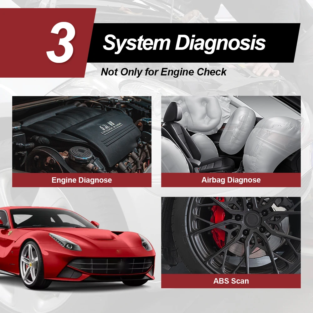 Этот Автомобильный сканер obd2 способен считывать и устранять коды неисправностей двигателя ECM/ABS/SRS.1. Диагностика АБС: путем доступа к системе ABS для просмотра его прямого потока данных и получения кодов неисправностей, этот сканер может устранить проблему ABS с визуальным контролем всех тормозных компонентов, вызвавших предупреждающий светильник, и выключить светильник.2.SRS Диагностика: путем обнаружения всех электронных параметров в системе SRS, чтобы проверить их состояние здоровья, этот диагностический инструмент может своевременно решить возможные проблемы SRS, чтобы обеспечить безопасность вашего вождения, И выключите предупреждающий светильник подушки безопасности.3. Диагностика ECM: вы можете диагностировать систему двигателя через порт ecu obd2, поддерживает все 10 режимов тестирования OBDII, таких как данные в реальном времени, Тест датчика O2, тест компонентов и многое другое; прочитайте и очистите коды ошибок двигателя, узнайте точную проблему, отремонтируйте ее и выключите светильник двигателя MIL.