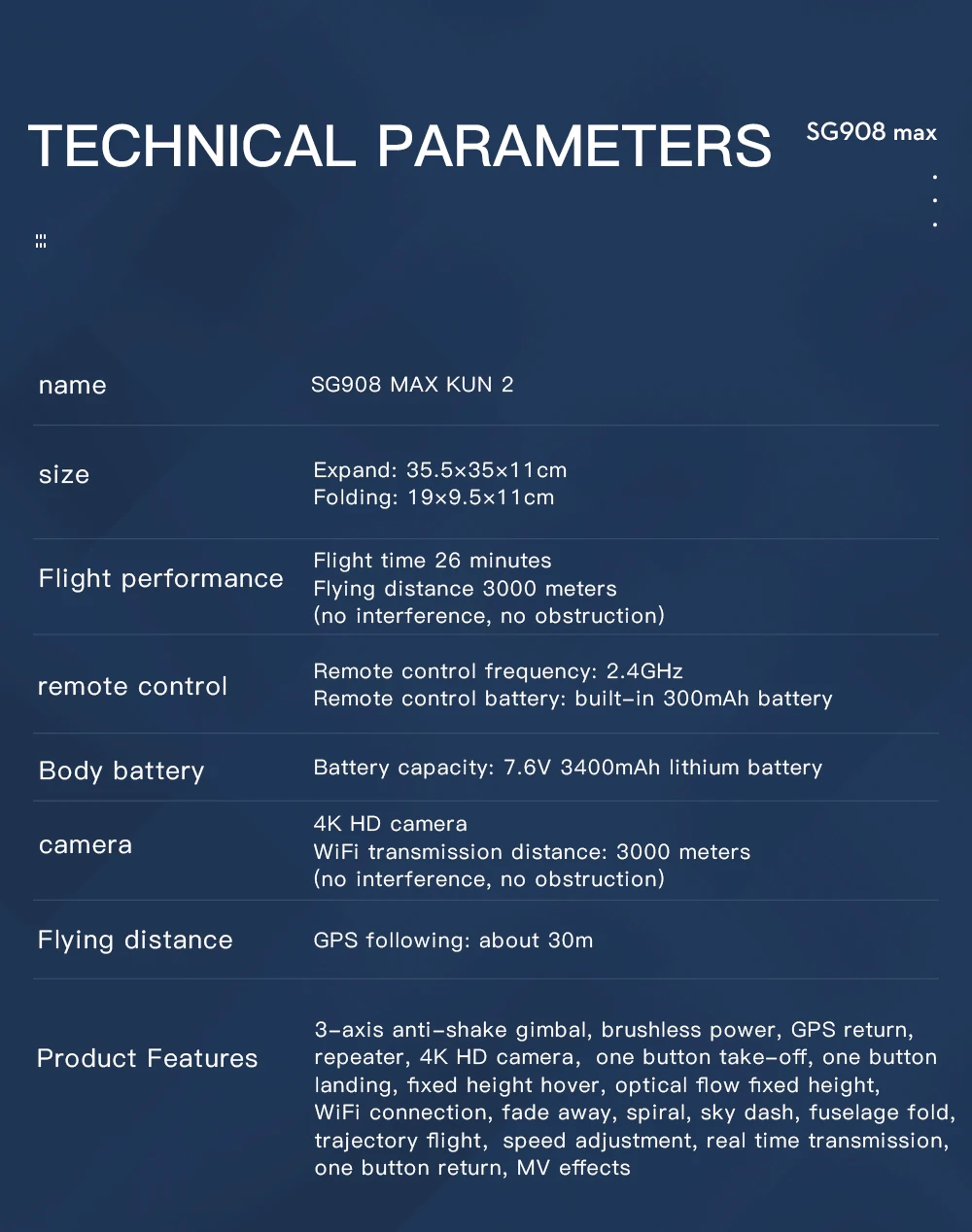 SG908 Max Особенности: