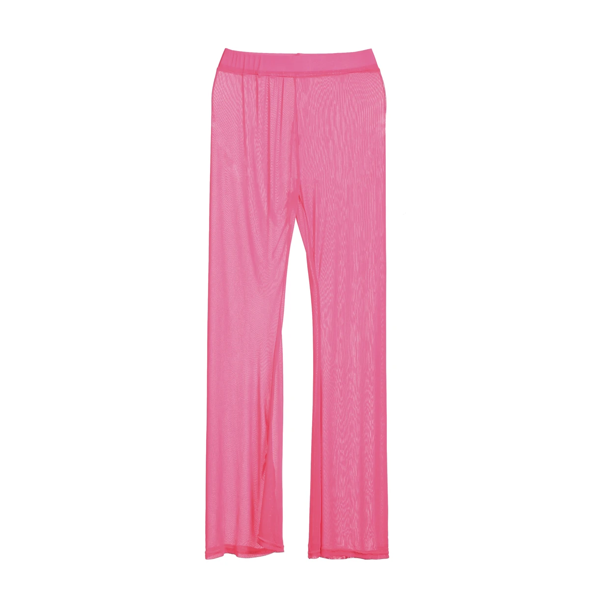 Женские длинные брюки с высокой талией, прозрачная накидка, расклешенная сетка, прозрачные широкие брюки с оборками, однотонная пляжная одежда, штаны с широкими штанинами-бикини