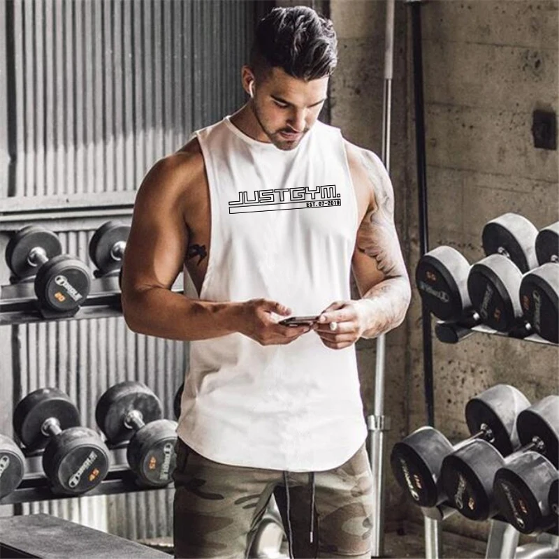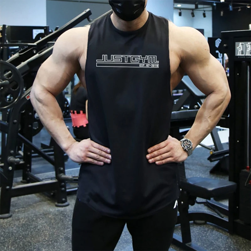 Новинка, лидер продаж, мужской дышащий крутой жилет с принтом, футболки для бега из хлопка с принтом, футболки для фитнеса без рукавов