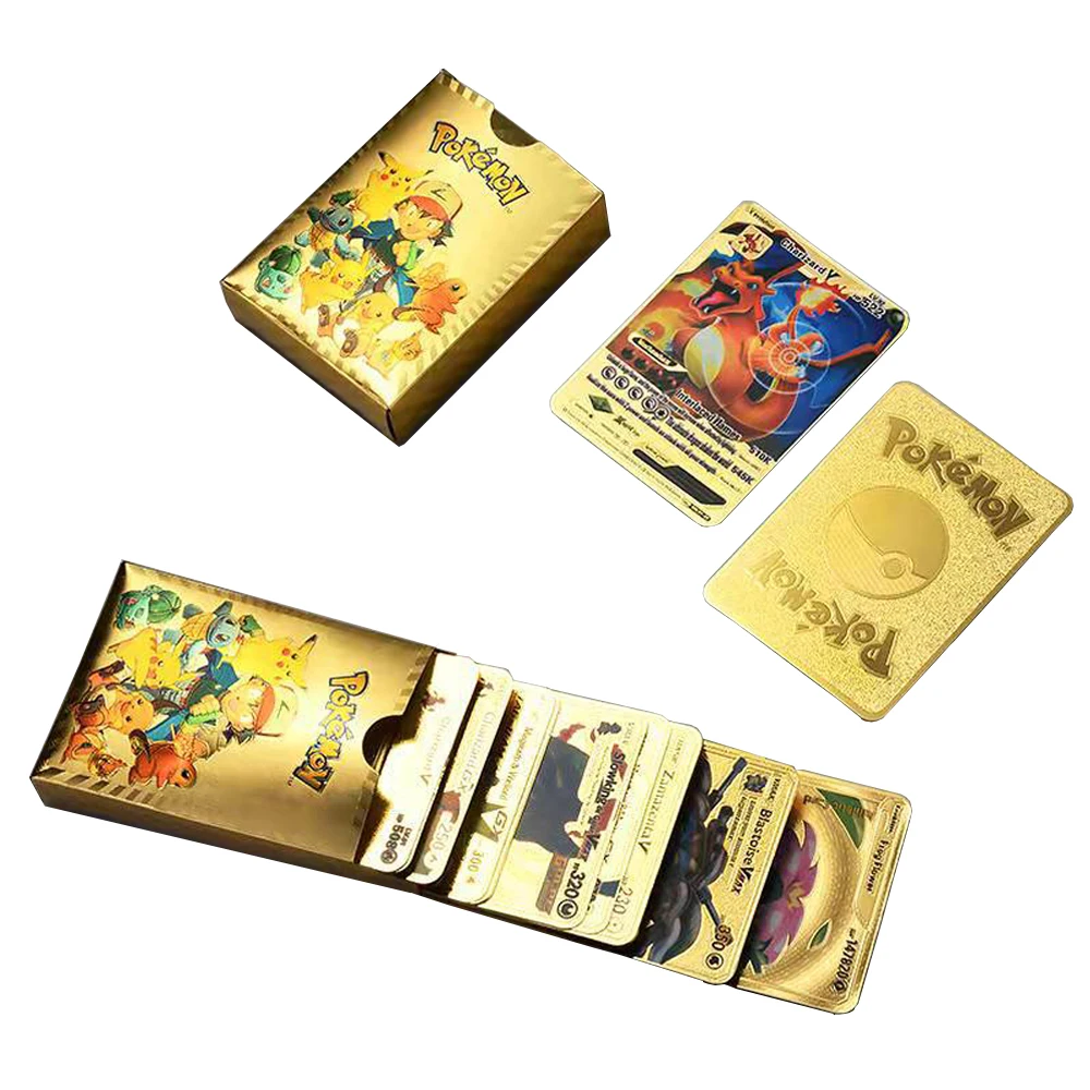 Металлические золотые карточки с покемоном, 27 шт., золотые буквы, ...