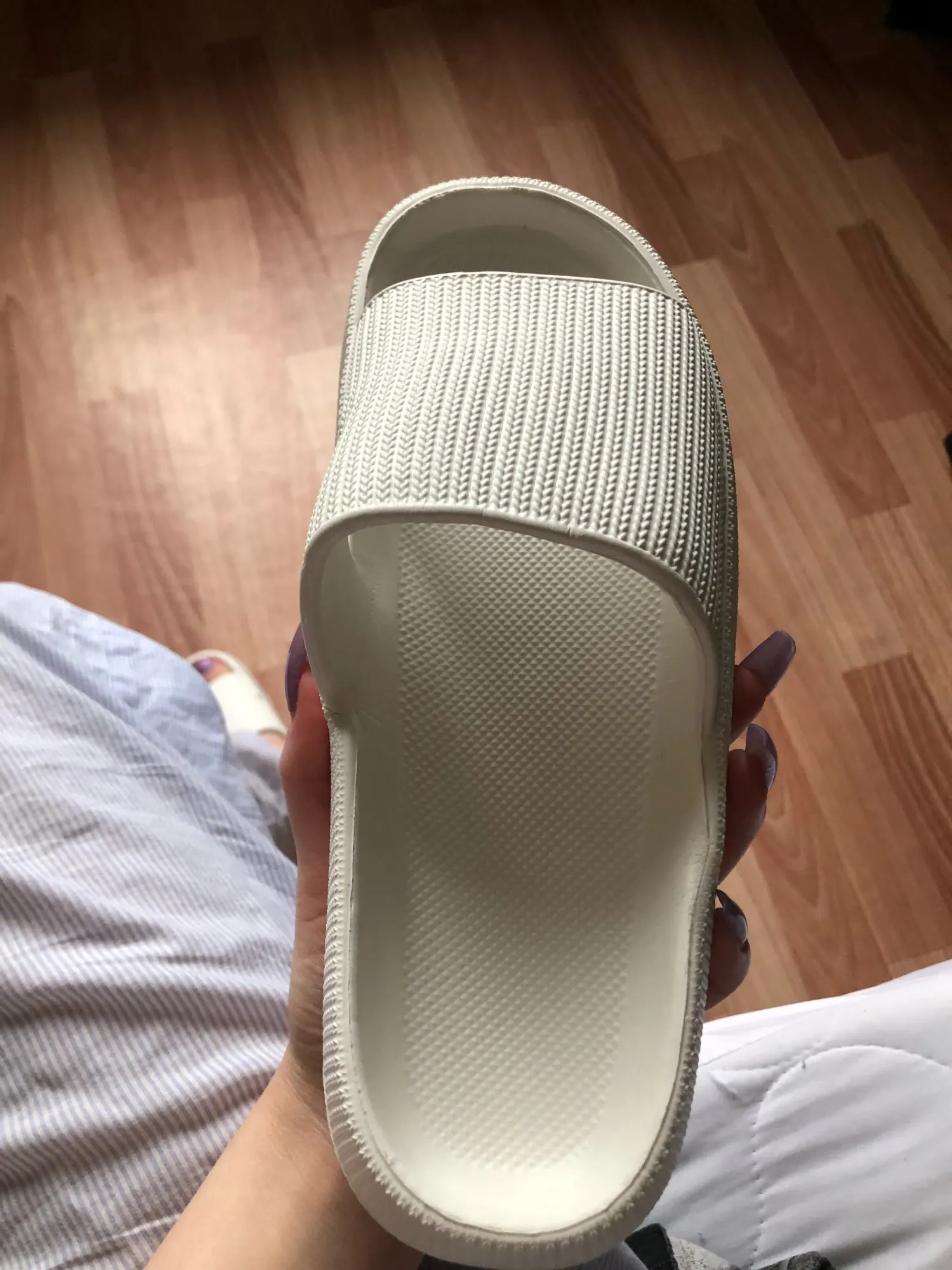 Сланцы не на тонкую ногу, в целом сидят нормально, но ощущается свобода из-за которой страшно что слетят. На 36 все же немного великоваты. А по качеству классные, мягкие, немного с платформой