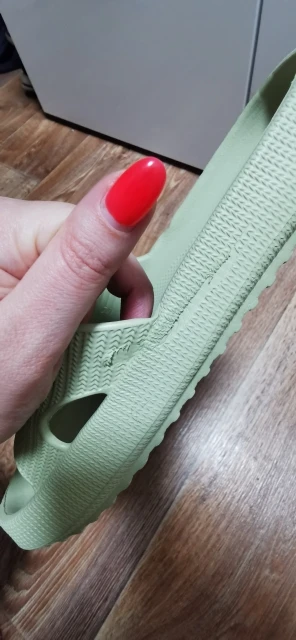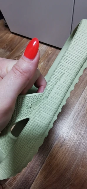 Отличные шлёпки, как на фото. Ничем не пахнут, быстрая доставка. На своей 36 размер, заказала 36-37, сели идеально