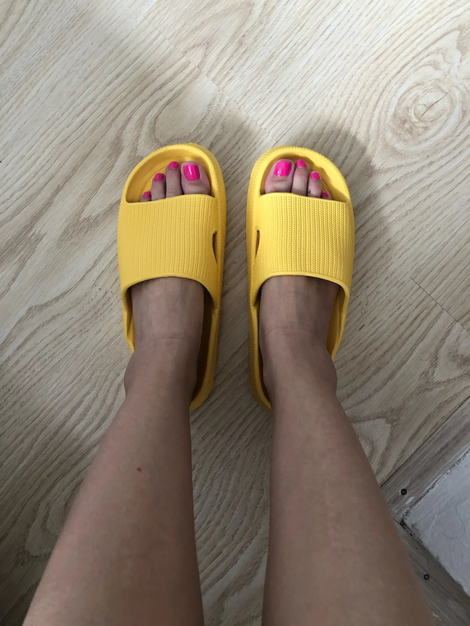 Шлёпанцы класс! брала на один размер больше, чем у меня, и все отлично по размеру подошло. Очень лёгкие, удобные, внешне как на фото.