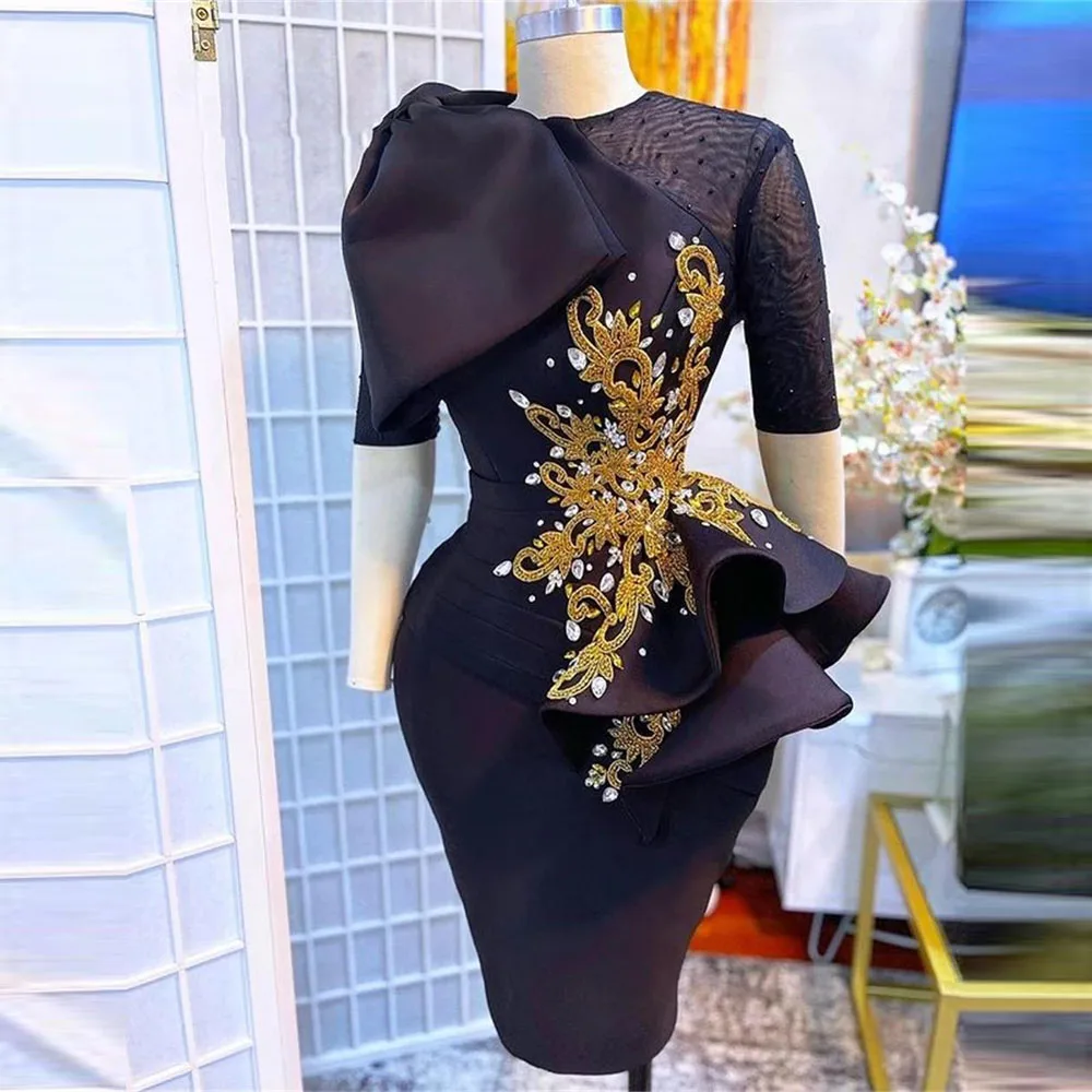 Aso Ebi черные короткие коктейльные платья для девочек из прозрачно...