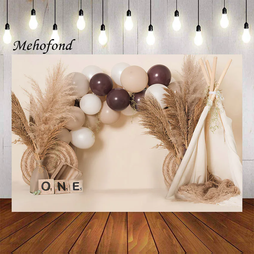 Фон для фотосъемки Mehofond с воздушными шарами в богемном стиле палатка для кемпинга для девушек на 1-й день рождения торт разбиваемый фон для фотостудии