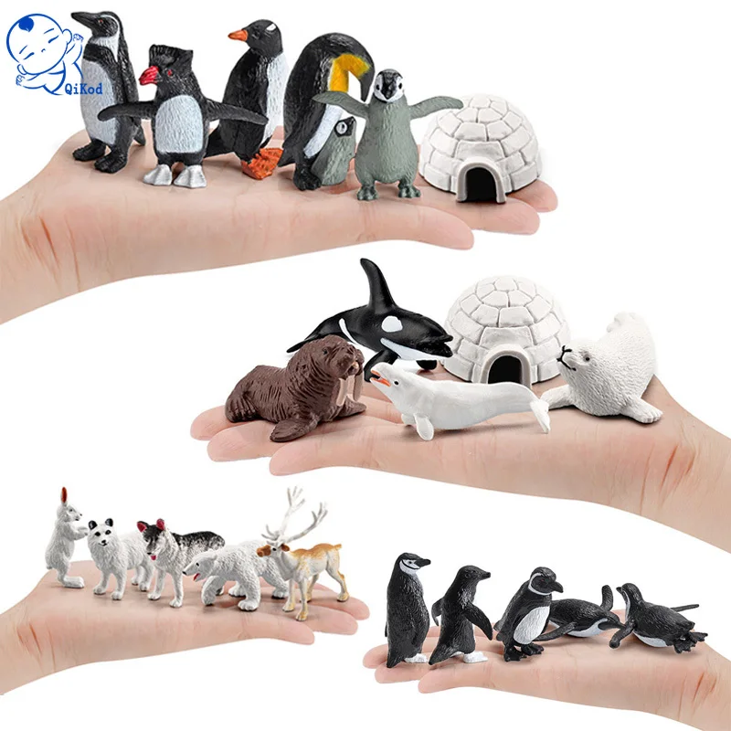 Новые мини-фигурки полярных животных, полярный медведь, Пингвин, модель детской пластиковой экшн-фигурки из ПВХ, обучающие игрушки для детей