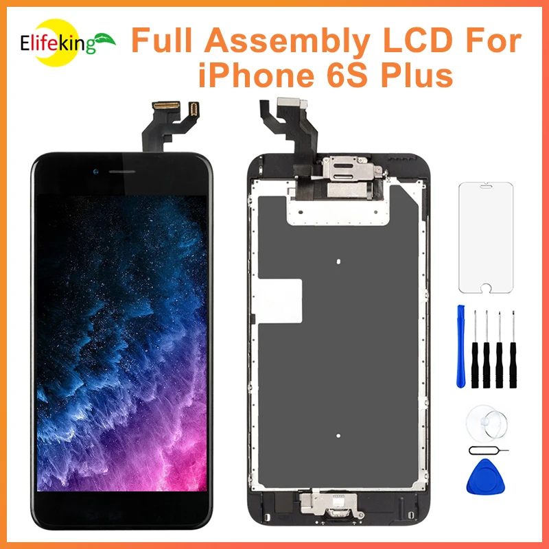 Полный комплект ЖК-экрана для iPhone 6S Plus, 3D сенсорный дигитайзер в сборе, замена с кнопкой возврата, Передняя камера, инструмент из закаленного стекла