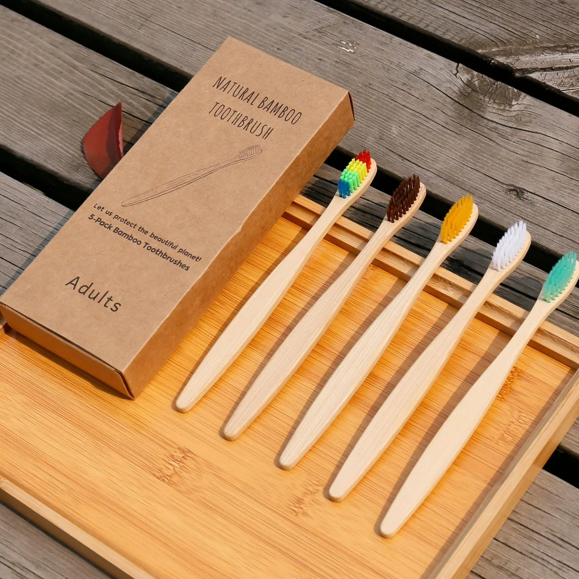 Набор зубных щеток из цветная зубная щетка натурального бамбука, 5 шт.