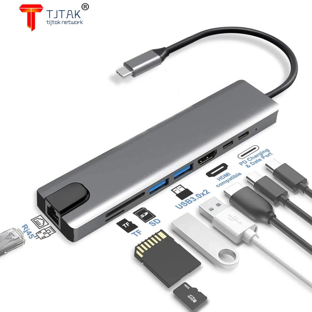 USB-концентратор Тип C 3,1 а 4K HDMI RJ45 USB SDTF-адаптер PD Caga Rapida 8-EM-1 адаптер USB для MacBook AR Pro