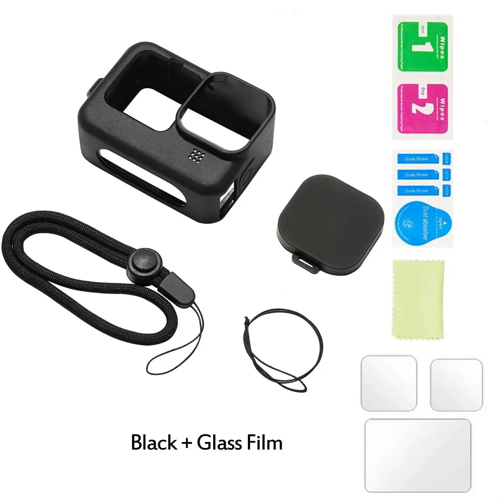 Силиконовый чехол для GoPro Hero 10 9, Черная защитная пленка для экрана из закаленного стекла, крышка для объектива, аксессуары для Go Pro 9