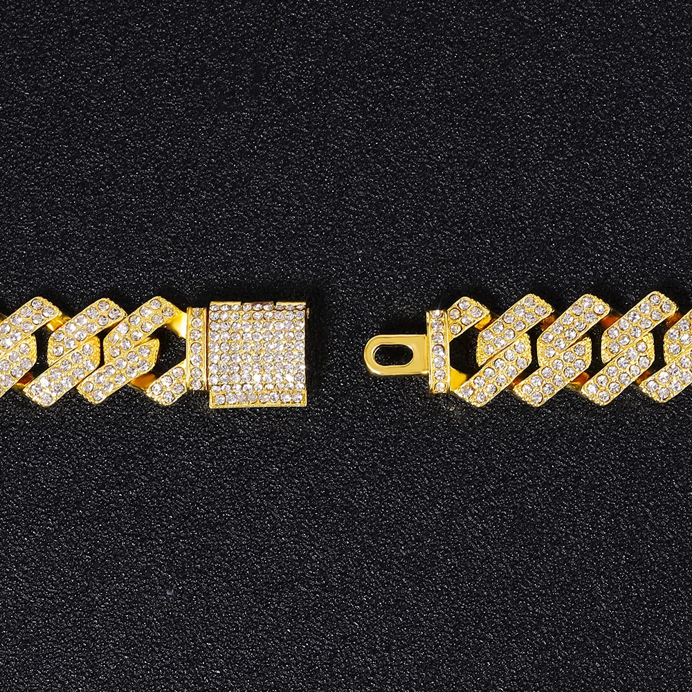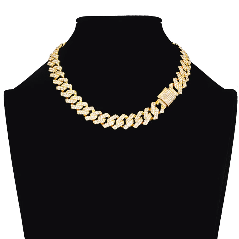 Комплект из кубинской цепи Майами Мужской, ожерелье из квадратных звеньев 16 мм, колье золотистого цвета с блестящей цепочкой и кубическим цирконием, Ювелирное Украшение в стиле рокхип-хоп
