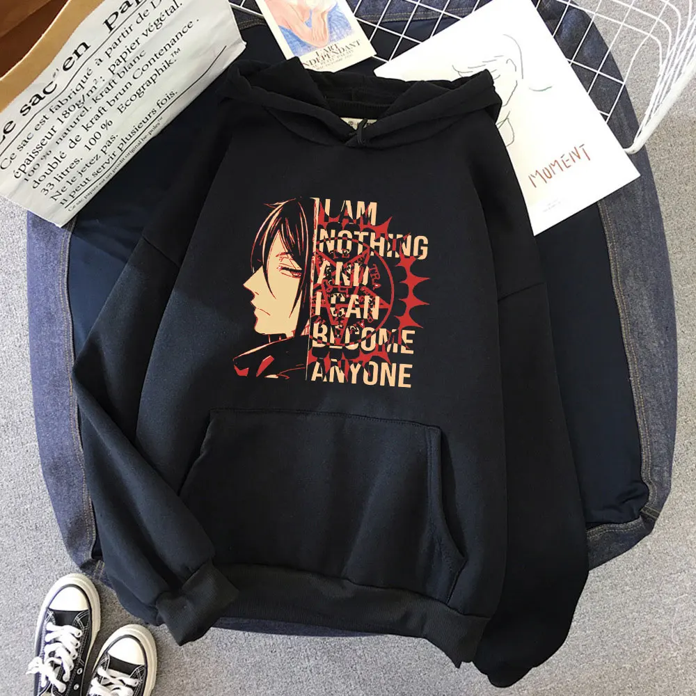 Забавные Японские Аниме черные толстовки Батлер Себастьян михаелис Модный пуловер Caeroon Kuroshitsuji Харадзюку для мужчин и женщин Свитшот
